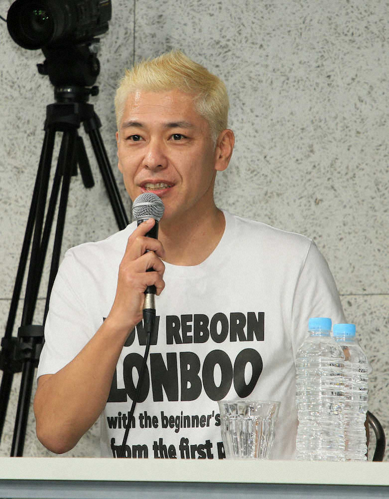 会見するロンドンブーツ1号2号の田村亮(撮影・尾崎 有希)
