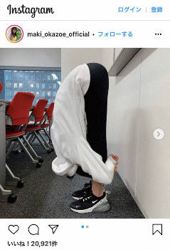 フリーアナウンサーの岡副麻希(27)が自身のインスタグラムを更新。折り畳んだように前屈した写真を投稿し、反響を呼んでいる。