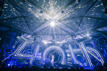 今年で40回を迎え、ステージには「40th」とかたどられた巨大セット。銀世界をイメージしたシルバーのロングドレス姿で「40周年おめでとう」と自ら祝福。例年はアンコールで歌うことが多い「BLIZZARD」でスタートした。