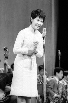 92年12月、NHK紅白歌合戦で「こんにちは赤ちゃん」を熱唱する梓みちよさん