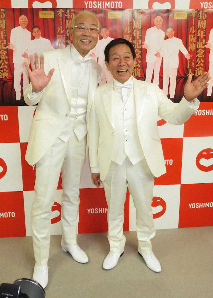 大御所漫才コンビ「オール阪神・巨人」が4日、大阪市内で芸能生活45周年記念公演の会見を開いた。