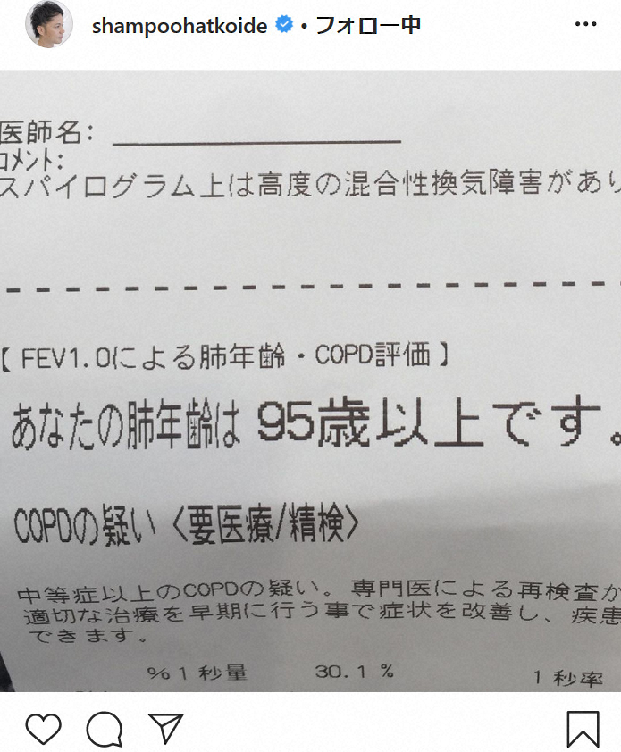 お笑いコンビ「シャンプーハット」のこいで Photo by スポニチ シャンプーハット・こいで“肺年齢95歳以上”にガックリ 「酸素持ち歩くこ… ギャラリーで見る この記事のフォト 2020年02月07日の画像一覧 もっと見る 2020年02月07日の画像をもっと見る
