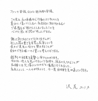 沢尻被告は所属事務所を通じて自筆のコメントを発表。「身勝手な行動」を謝罪し、「犯した罪の重さを自覚し反省していき全力で更生に向けて努力することが自分のできる唯一の償いと考えております」と更生を誓った。