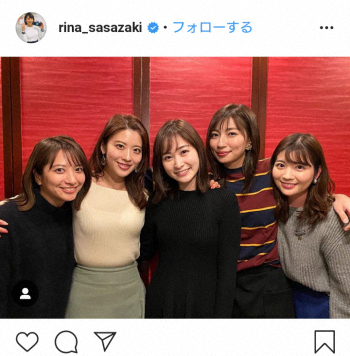 日テレ・笹崎里菜アナ 局アナ5人の高校サッカー慰労会公開に「全員美女ってすご」「美女軍団」