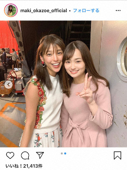フリーアナウンサーの岡副麻希(27)が17日、自身のインスタグラムを更新。TBSの篠原梨菜アナ(22)とのツーショット写真を公開し、反響を呼んでいる。