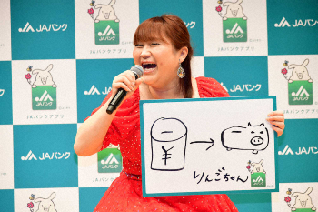 ものまねタレントのりんごちゃん(年齢非公表)が26日、都内で開催された「JAバンクアプリ」PRイベントに、 女優の松下奈緒(34)と出席。りんごちゃんはブレイク後のお金の使い方の変化を明かしたほか、「コロナぶっ飛ばせキャンペーン」をしていると笑顔を報告した。