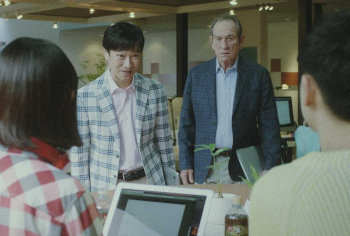 堺がトミー・リー・ジョーンズ(73)を連れて成田凌(26)、杉咲花(22)のところへやってきて「新人、個性派ぞろいなんだって?」と尋ねる。視線の先のりんごちゃんが「ヤダー、でも…」と話しているが、声が突然「炎上なんか気にしなくていいっしょ」と野太い声に変わる。続いて、先輩と話している寺田が「子どもじゃないんですから、駄々こねるのはやめましょうよ」と諭す。最後はミーティングルームで得意先と会議中の古市氏が「部長のご意見、正しいだけで全然面白くないですよね」とズバッと指摘。オフィスに「新しい風」を吹かせる個性派揃いの共演に堺もたじたじに…!?