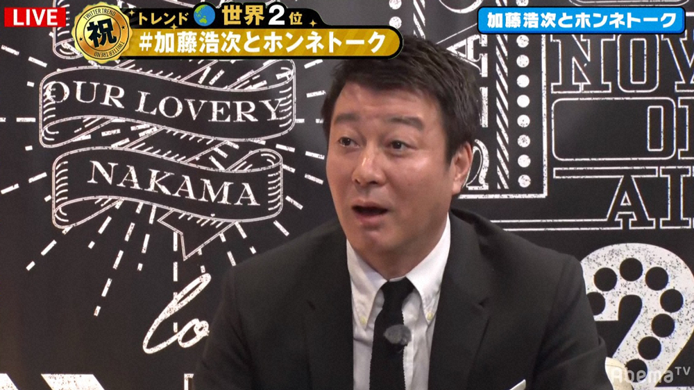 お笑いコンビ、極楽とんぼの加藤浩次(50)が1日、AbemaTV「7・2 新しい別の窓」(後5・00~)に生出演。元SMAPメンバーで「新しい地図」の稲垣吾郎(46)草なぎ剛(45)香取慎吾(43)とトークを展開した。