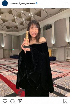 インスタには授賞式で話題となった黒のドレス姿で、トロフィーを持ち破顔する写真を投稿し「いつも、ありがとう。そして、これからもよろしくね。沢山の人の想いと言葉の数々、感動的で勇気を貰った夜でした。ありがとう」とつづった。