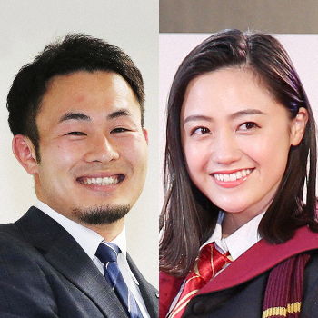 ラグビー日本代表でパナソニックWTBの福岡堅樹(左)とタレントの小林麗菜