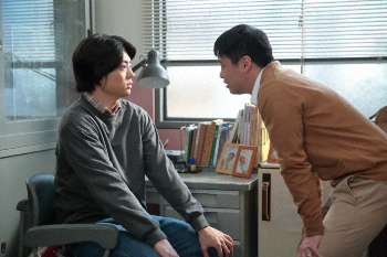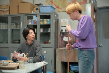 連続テレビ小説「スカーレット」第136話。夕食を一緒に食べようと武志(伊藤健太郎・右)に言う喜美子(戸田恵梨香・左)(C)NHK