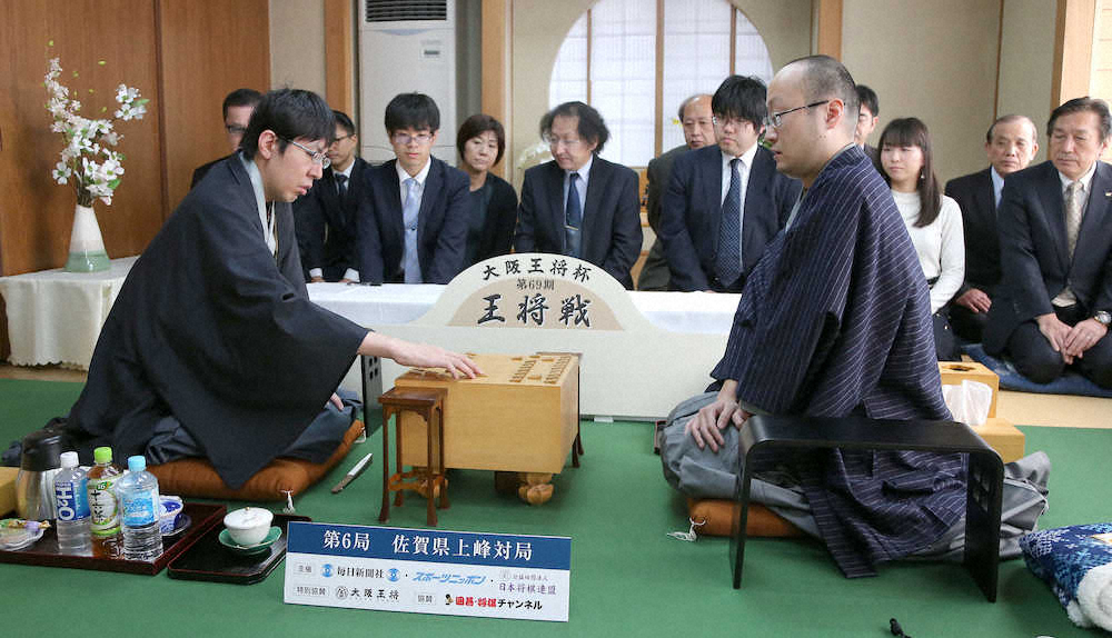渡辺明王将(35)2勝、広瀬章人八段(33)3勝で迎えた第6局は14日午前9時、佐賀県上峰町の「大幸園」で2日目が指し継がれ、開封された広瀬の封じ手は[先]6六同銀だった。これに渡辺が即座に[後]同歩と応じ、対局が再開された。