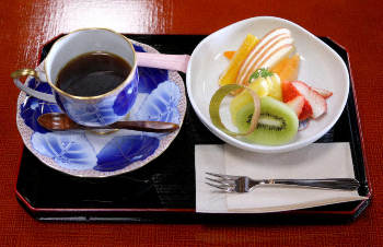 10:30 デザート(フルーツの盛り合わせ、ホットコーヒー)