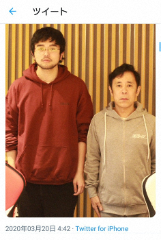 岡村は19日深夜、井口がパーソナリティーを務める「King Gnu井口理のオールナイトニッポン0(ZERO)」(木曜深夜3・00)にゲスト出演していた。井口はその際に撮影したと思われる写真を投稿。井口と岡村がともに直立し、真顔で前を見据えている姿をアップした。