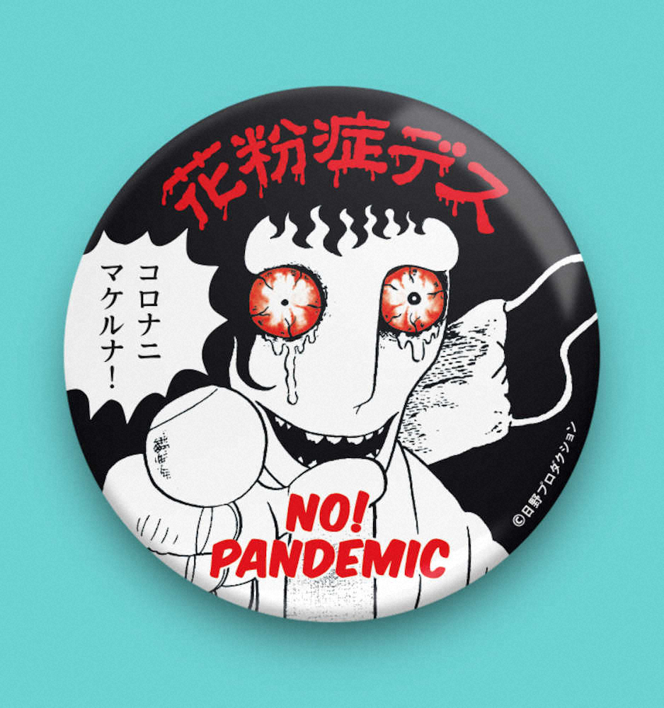 怪奇漫画家で絵本作家の日野日出志氏が、新型コロナウイルスの感染が広がる中で花粉症に苦しむ人たちが、ウイルス感染者と誤解されないための缶バッジを製作した。「ショッキングな花粉症缶バッジ」と命名され、23日に発売される。「コロナに負けるな」の思いを込めて価格は税込み567円。大きさは直径44ミリ。