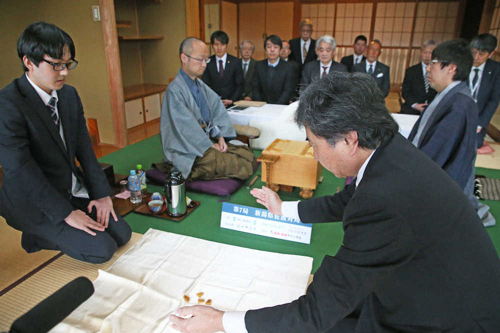 <王将戦 第7局 第1日> 王将戦第7局第1日は渡辺明王将(左)の先手番で始まった。 右は挑戦者の広瀬章人八段 (撮影・西川祐介) Photo by スポニチ 王将戦第7局スタート 先手番は渡辺王将 ギャラリーで見る この記事のフォト 2020年03月25日の画像一覧 もっと見る 2020年03月25日の画像をもっと見る