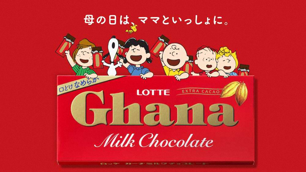 ロッテ「ガーナチョコレート」と「PEANUTS(ピーナッツ)」が、7日から放送される新CMで初のコラボレーションを実現。5月10日の「母の日」に向けて、「母の日は、ママといっしょに。」をテーマに、母子で一緒に過ごすことを提案する。