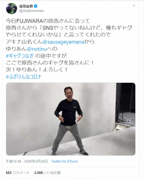 コロナに負けるな!庄司が企画 ギャグつなぎが話題 60人以上登場 菅田も参戦、ダルがリツイートで浸透