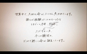 YouTubeの動画は書道8段の腕前を生かして直筆した歌詞を映し出す「リリックビデオ」として配信する。動画のラストでは「子供たちのこれからの明るい未来と、また皆さんと笑顔で会える日を願い…共に生き抜いていきましょう!!」とメッセージを送った。
