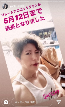 マレーシア在住のGACKTはストーリーズに投稿した動画で「ロックダウンが5月12日まで延びました。これで3回目の延長となります」と報告。「みんな、大変な時期ですが頑張りましょう、笑顔で」と呼び掛けた。