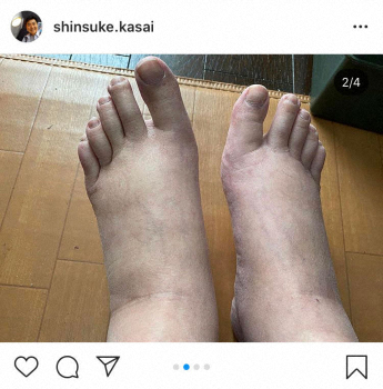 笠井アナは「ちょっと困りました」と切り出し、「2、3日前から足がじんじんするなと思っていたら急に足がむくんできました」とむくんだ両足の写真を投稿。「入院して4ヶ月半 むくんだことがなかったので、ちょっと焦ってます」とつづった。