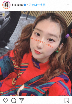 自身がパーソナリティーを務めるニッポン放送「ファーストサマーウイカのオールナイトニッポン0」(月曜深夜3・00)の放送終了後の投稿で「毎週月曜深夜3時は私の心の家に帰る時間です」とつづり、ツインテール姿でネチュラルメイクのショットをアップした。