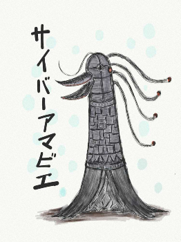 自然のアマビエだとなかなか見つからないので、人工で作れたほうがコスパがいいと思ってサイバーアマビエを描いてみました。