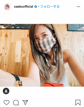 モデルでタレントの紗栄子(33)が26日に更新した自身のインスタグラムで、チェック柄の布マスク姿の写真を公開した。