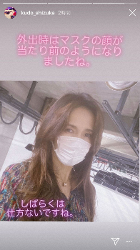 歌手の工藤静香(50)が28日、自身のインスタグラムに更新。「しばらく仕方ないですね」と外出時のマスク姿を公開した。