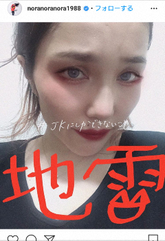 お笑いタレントの平野ノラ(41)が5月30日、自身のインスタグラムを更新。現在、若い世代で流行している「地雷メイク」で“変身”した姿を公開した。