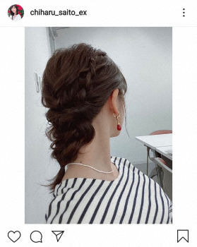 「今日の髪型は『後ろで一つに三つ編みするような感じで…ざっくりと編み込みといいますか…なんというか…ラプンツェルみたいに!!お願いします』とお願いしました」として、三つ編みできれいに束ねられたヘアスタイルをアップ。「こんなざっくりとした要望にも理想通り…むしろ理想以上の髪型にしてくれるメイクさんに感謝です」とつづった。