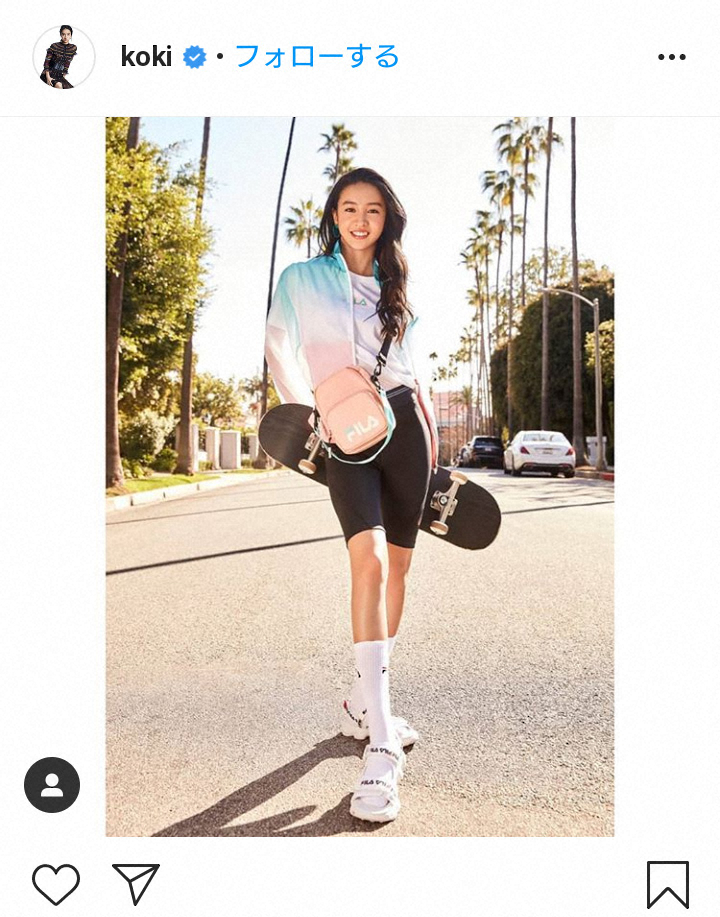 俳優の木村拓哉(47)と歌手の工藤静香(50)の次女Koki,(コウキ、17)が7日、自身のインスタグラムを更新。自身がアンバサダーを務める「FILA FUSION」で全身を固めたスポーティーなショットを公開した。