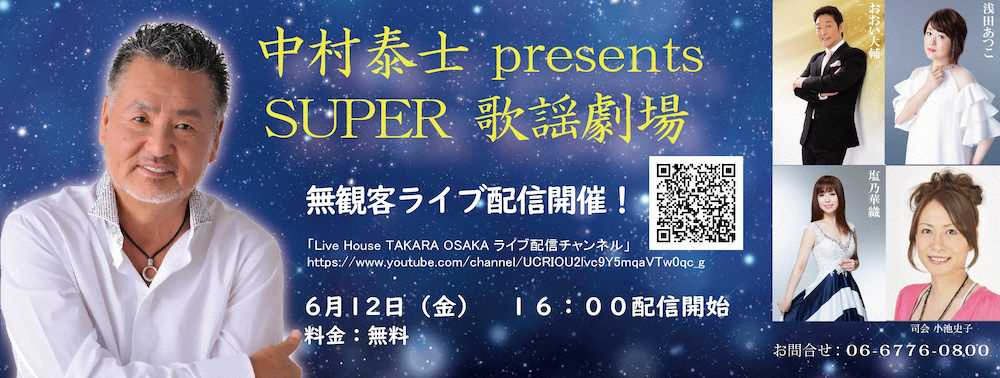 場所は天王寺区のライブハウス「TAKARA OSAKA」で午後4時にスタート。Live House TAKARA OSAKAライブ配信チャンネルで配信され、浅田あつこ、おおい大輔、塩乃華織ら大阪府出身の歌手らとともに盛り上げる。