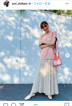モデルの蛯原友里(40)が17日、自身のインスタグラムを更新。ピンクTシャツ&白スカートのシンプルコーデを披露した。