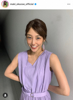 岡副アナのワンピース姿に「紫色似合ってる」「大人っぽい感じしますね」「爽やかスッキリ」「エンジェル」などの感想が寄せられた。