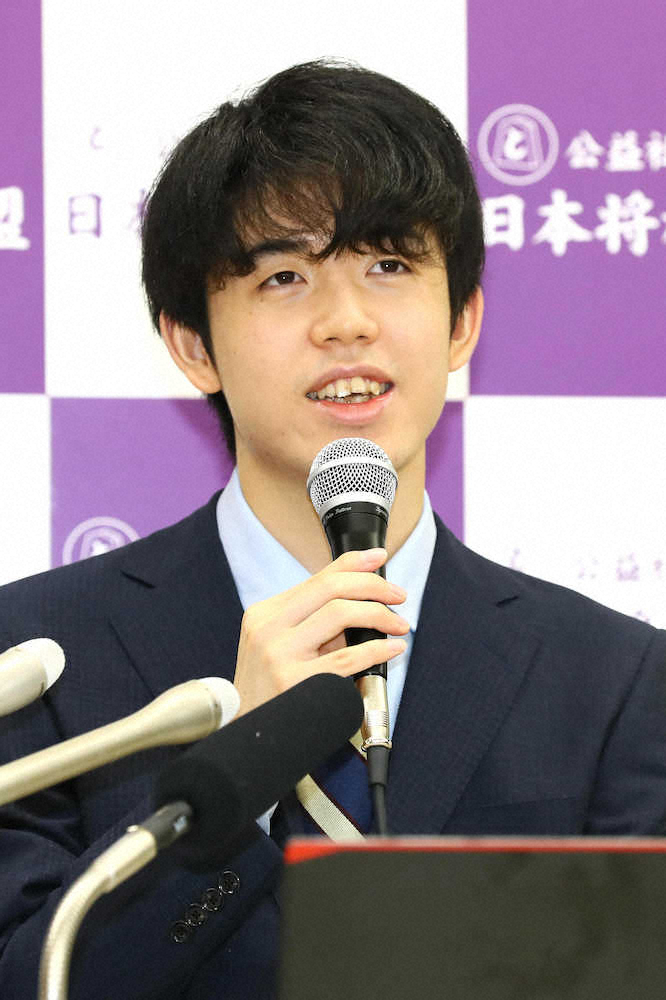 王位戦挑戦者となり笑顔で質問に答える藤井七段