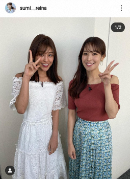 元テレビ東京でフリーに転身した鷲見玲奈アナウンサー(30)が25日、自身のインスタグラムを更新し、フリーの岡副麻希アナウンサー(27)とのツーショットを公開した。
