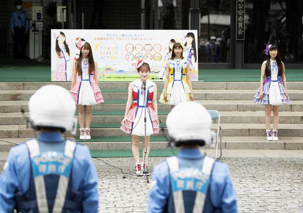 新型コロナウイルスの影響で減った車の量が戻り始め、交通ルールの順守を呼び掛けるのが狙い。交通安全広報大使のアイドルグループ「ももいろクローバーZ」がPRした。白バイ隊員もマスク姿で、ももクロメンバーが「世界一の交通安全都市TOKYOを目指して出動!」と号令をかけると、次々と出動した。ももクロは啓発イベントや動画に出演している。