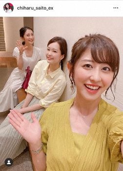 テレビ朝日の斎藤ちはるアナウンサー(23)が6月30日、自身のインスタグラムを更新。同局の同期・下村彩里アナウンサー(25)と、TBSの近藤夏子アナウンサー(23)との3ショットを公開した。