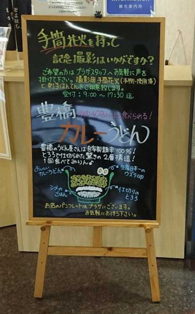 JR豊橋駅構内前にある情報ぷらざに掲げられた豊橋カレーうどんをPRする看板