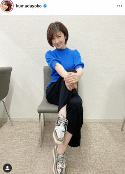 タレントの熊田曜子(38)が2日、自身のインスタグラムを更新。シンプルな洋服に派手なシューズを合わせた、ギャップを感じさせるコーディネートを披露した。