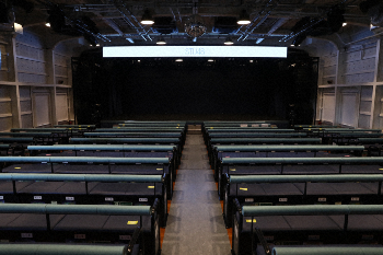 STU48号(857トン)は全長77・8メートル、幅12・5メートル。フェリーとして使用されていた船を改造し、収容人数約300人の劇場を設けた。昨年4月16日に広島市の広島港で就航し、初日公演が行われた。