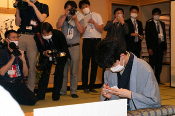 封じ手を立会人の深浦九段(左)に手渡す藤井七段(日本将棋連盟提供) Photo by 提供写真 藤井七段、はじめての封じ手 冷静な17歳が署名し忘れ…珍しくバタバタ ギャラリーで見る この記事のフォト 2020年07月14日の画像一覧 もっと見る 2020年07月14日の画像をもっと見る