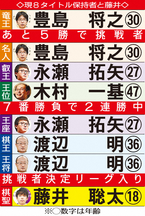 現8タイトル保持者と藤井棋聖