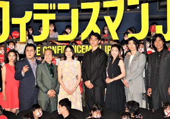 「きょう、コンフィデンスマンJPの初日を迎えられて、幸せだし、本当に腹の底から笑える作品になっていると思うので、だから…うーん、また、ジェシーが本当にステキなんです。『ジェシーってさすがだな』ってセリフがあったんですけど、それを心の底から言えるジェシーだった。僕もこれから劇場に見に行こうと思うんですけど、腹の底から笑いたい」と話した。