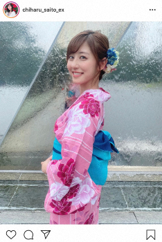 テレビ朝日の斎藤ちはるアナウンサー(23)が25日、自身のインスタグラムを更新。ピンク色の浴衣姿を披露した。