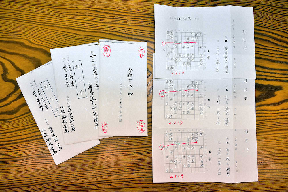 神戸市の中の坊瑞苑で午前9時に再開された第61期王位戦7番勝負第3局2日目。木村一基王位(中)の封じ手の確認を正立会人の淡路仁茂九段(右)から求められる藤井聡太棋聖(左)(提供・日本将棋連盟) Photo by 提供写真 藤井棋聖、最年少2冠王手なるか 王位戦第3局再開 初防衛目指す木村王位… ギャラリーで見る この記事のフォト 2020年08月05日の画像一覧 もっと見る 2020年08月05日の画像をもっと見る
