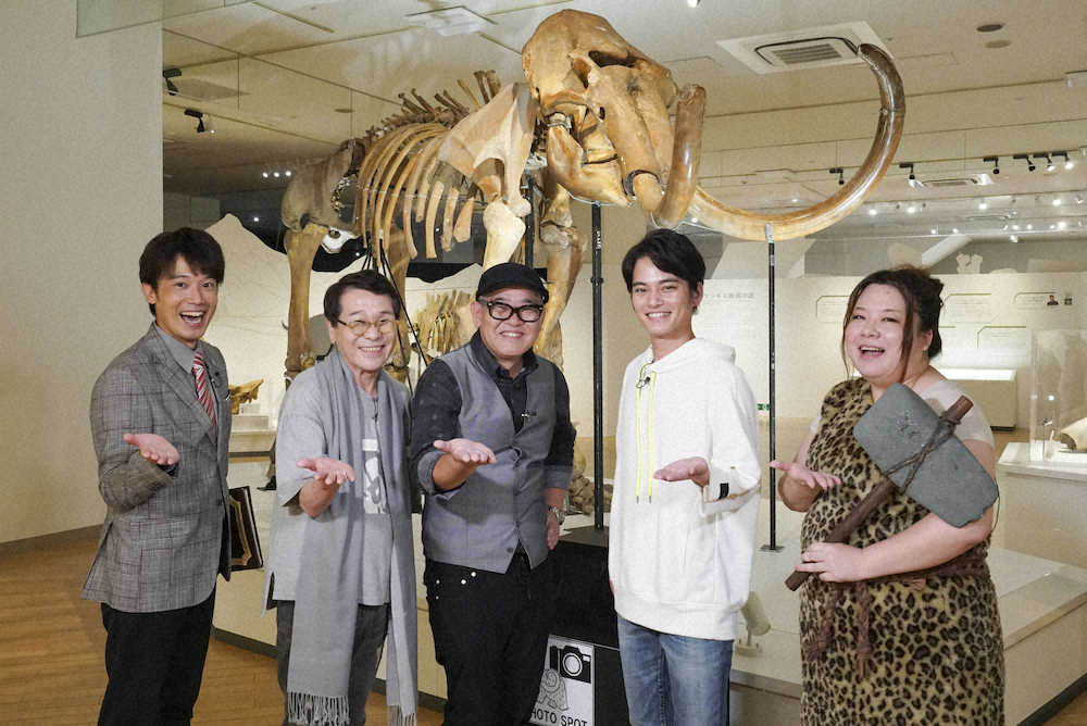 メンバーは川島壮雄アナウンサー(35)が出題する「マンモスに関するクイズ」に挑戦しながら、貴重な展示の数々を堪能。会場に入って、まず目の当たりにしたのが、巨大なマンモスの全身骨格。3~4体のマンモスの骨を組み合わせて、1体の全身骨格を再現しており、「入った瞬間にホンモノやで」と兵動は驚き、ピーコは「足がすっごい太い」。中山も「ホンモノ。骨だけでもすごくでかいのに、ここに肉が付いて、毛で覆われてと想像したらめっちゃでかい!これだけでも価値がある」と大興奮だ。