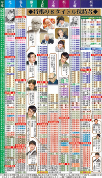 8タイトル保持者の歴史を見ると、棋界のレジェンドたちの存在が一目瞭然。そこには素晴らしい好敵手がいた。名勝負「高野山の決戦」で知られる大山康晴―升田幸三。第5期王将戦で升田が名人の大山を指し込み、香落ち番でも勝った一番は伝説だ。中原誠―米長邦雄も昭和を代表するライバル。平成は谷川浩司―羽生善治のつばぜり合いにファンが熱狂した。