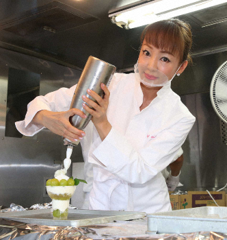 ○…イベントでは、シャインマスカットをふんだんに使用した特製パフェの実演販売を行った。本格的にスイーツのプロデュースに挑戦したのは初めてで「夏にぴったりでインスタ映えもする。暑いのでクリームも溶けにくくしてます」とアピールした。特製パフェはテークアウトアプリ「ClickDishes」を通じて購入できる。